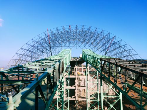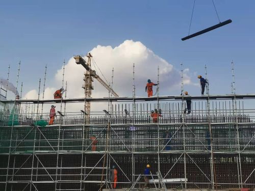 南鋼C型料倉縱擋墻架體施工