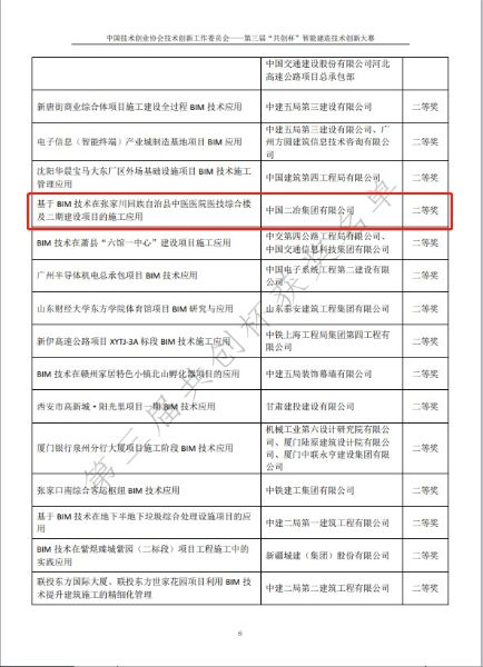 11月30日,由中國(guó)技術(shù)創(chuàng)業(yè)協(xié)會(huì)技術(shù)創(chuàng)新委員會(huì)主辦的第三屆“共創(chuàng)杯”智能建造技術(shù)創(chuàng)新大賽比賽結(jié)果揭曉,中國(guó)二冶集團(tuán)“蘭州新區(qū)瑞嶺御景苑項(xiàng)目的BIM技術(shù)應(yīng)用”榮獲施工組一等獎(jiǎng),“基于BIM技術(shù)在張家川回族自治縣中醫(yī)醫(yī)院醫(yī)技綜合樓及二期建設(shè)項(xiàng)目的施工應(yīng)用”作品榮獲施工組二等獎(jiǎng)。