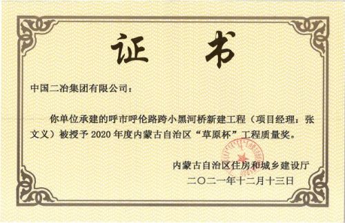 近日,內(nèi)蒙古自治區(qū)住房和城鄉(xiāng)建設(shè)廳官網(wǎng)公示2020年度內(nèi)蒙古自治區(qū)“草原杯”工程質(zhì)量獎(jiǎng)名單,中國二冶內(nèi)蒙古分公司承建的內(nèi)蒙古自治區(qū)綜合疾病預(yù)防與控制中心項(xiàng)目、呼市呼倫路跨小黑河橋同時(shí)榮獲2020年度第二批內(nèi)蒙古自治區(qū)“草原杯”工程質(zhì)量獎(jiǎng)。