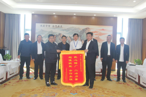 會上,楊樹仁一行代表默夙集團向中國二冶贈送錦旗,對中國二冶在默銳一期項目建設中,突破工期緊任務重等不利因素,高標準嚴要求,精益求精匠心鑄企,披荊斬棘奉獻二冶力量,優(yōu)質快速完成工程建設任務,實現雙方互惠互利,給予高度肯定和表揚。會前,雙方共同參觀了中國二冶榮譽展廳。