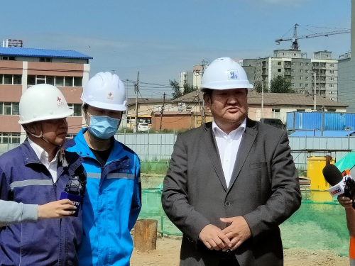8月14日,蒙古國建筑與城市建設部部長孟和巴特爾一行到中華人民共和國援建、中國二冶承建的蒙古國棚戶區(qū)改造項目檢查指導工作并提出要求。