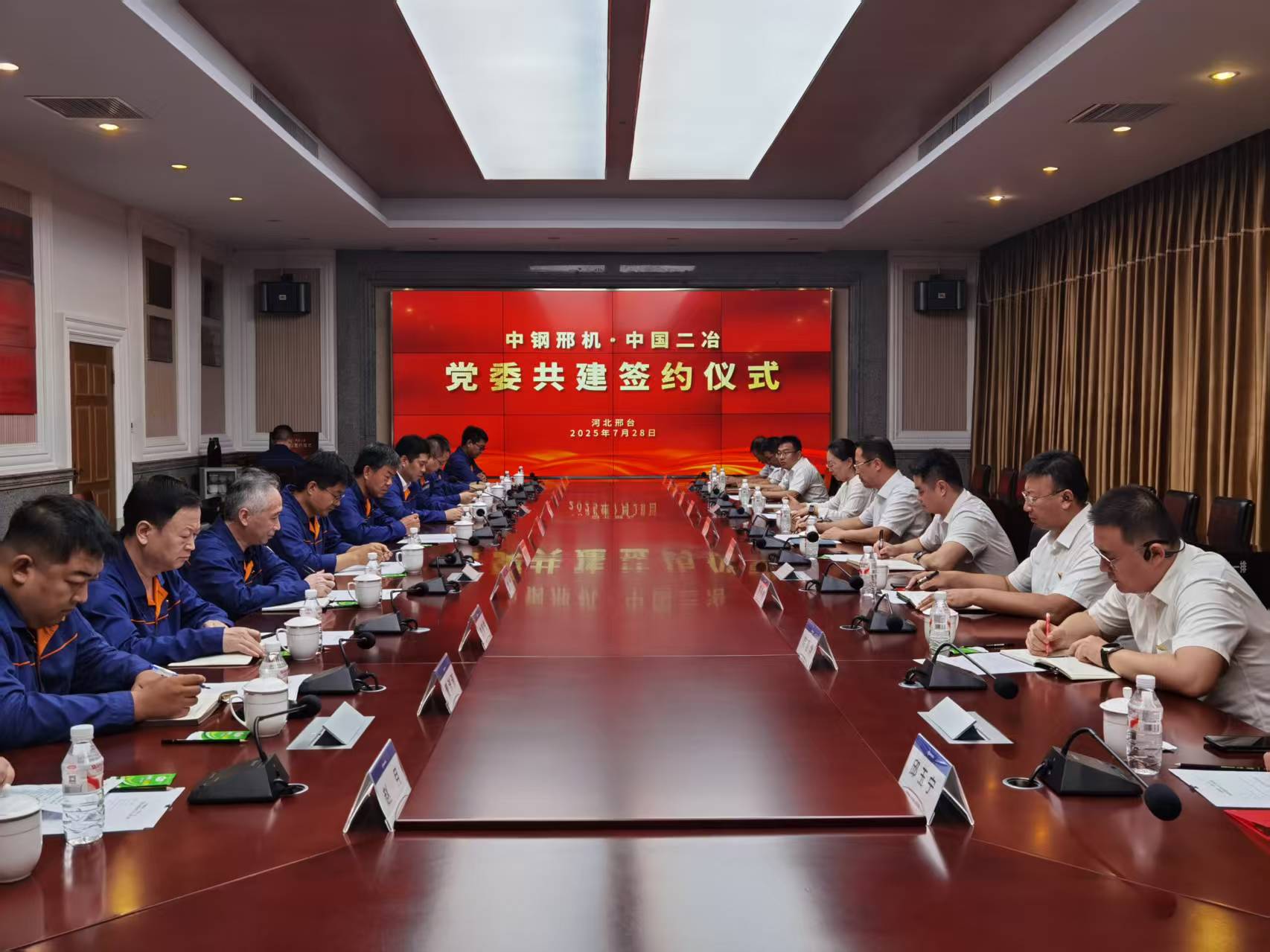 為充分發(fā)揮黨建引領(lǐng)作用,深化國有企業(yè)黨建與生產(chǎn)經(jīng)營融合互促,7月28日,中國二冶黨委與中鋼邢機(jī)黨委在河北邢臺舉行黨建聯(lián)建共建簽約儀式。寶武重工(中鋼裝備)副總經(jīng)理,中鋼邢機(jī)黨委委員、工會(huì)主席、總法律顧問、董事王瑞;寶武智維、寶武重工紀(jì)委副書記、紀(jì)檢監(jiān)督部部長,中鋼邢機(jī)黨委副書記、紀(jì)委書記林毅;中國二冶黨委副書記、工會(huì)主席李海;雙方企業(yè)相關(guān)業(yè)務(wù)部門負(fù)責(zé)同志共同參加簽約儀式。